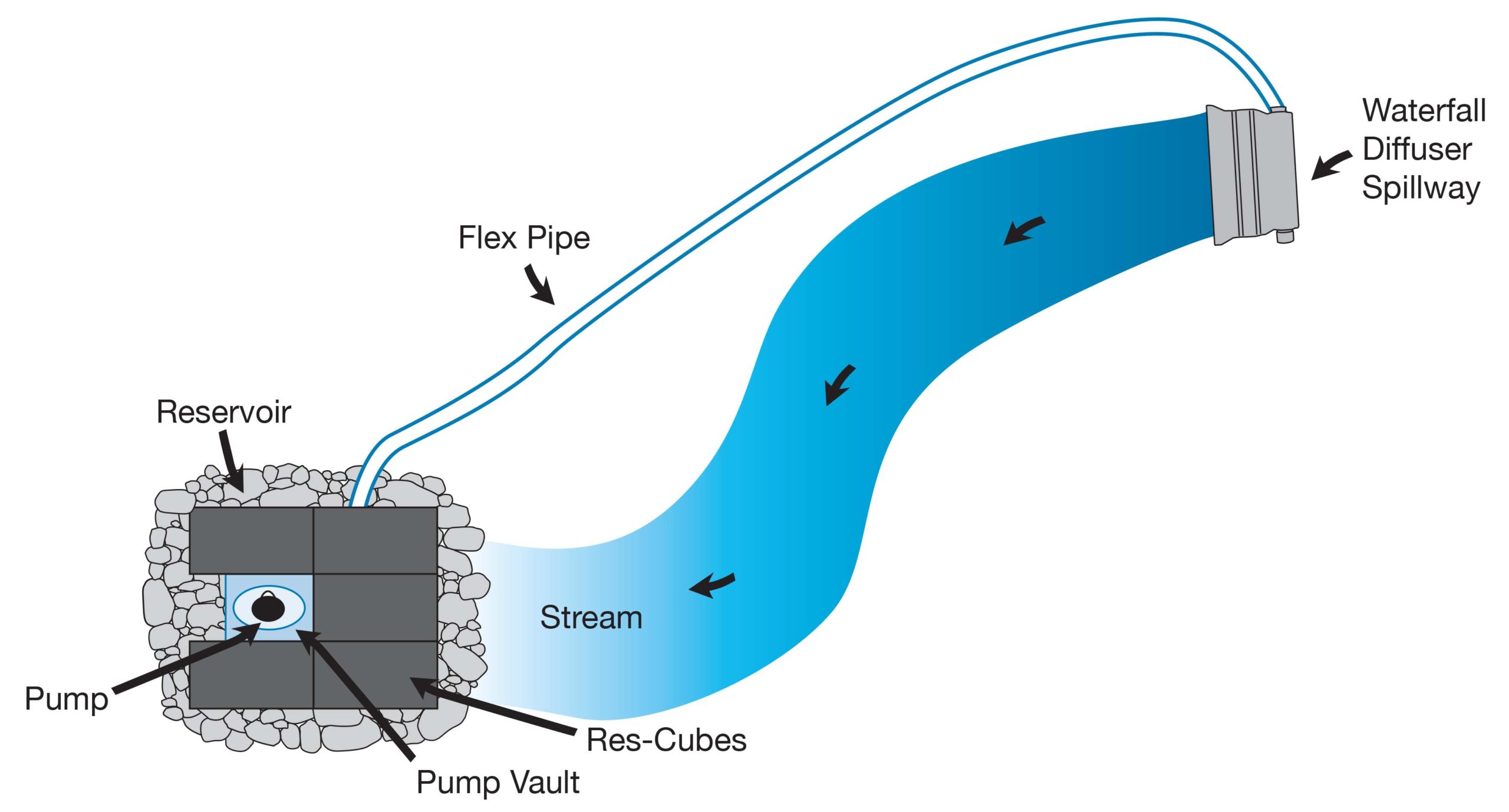 Complete kits for building beautiful waterfalls and streams Just-A-Falls Kits with Waterfall diffusers: