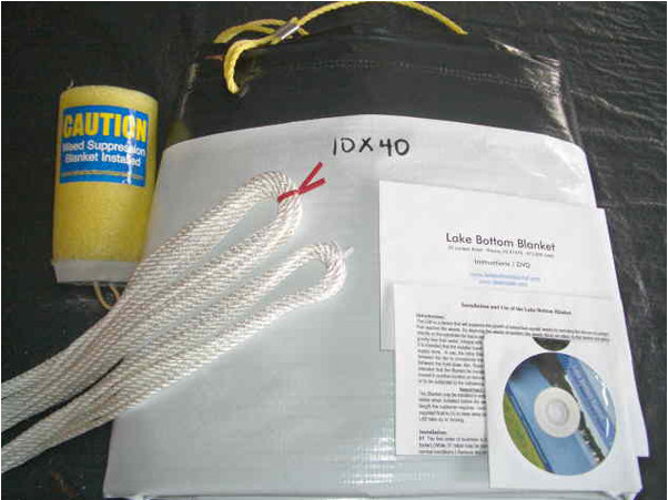 The blanket comes with great instructions, you will need to purchase your own re-bar. 3/8″ diameter is the best choice for ponds and lake where there is no heavy boat traffic and cheaper than the 1/2″ re-bar. 1/2″ re-bar is used when we do have boat traffic but would only use on the ends of the blanket.